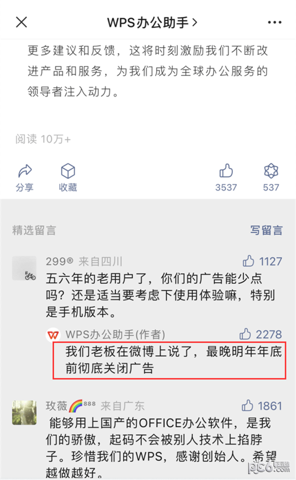 WPS在体积、打开速度、功能等方面超越Office,而且不用缴费也能用,不过免费版经常有广告,除了页面广告外,还有弹窗广告。好消息是,今天在回应广告问题时,WPS办公助手称:“最晚明年年