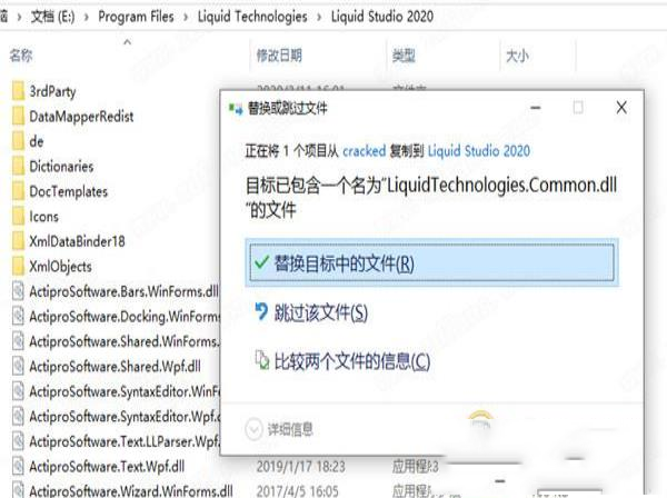 10、先不要运行软件,将破解补丁LiquidTechnologies.Common.dll复制到软件安装目录下替换