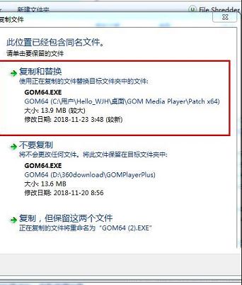 1、打开软件包,将patch目录下的破解补丁GOM64.EXE复制到软件安装目录下替换原文件,可以右键选择打开文件位置进入安装目录。