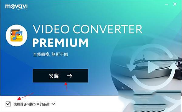 1、下载数据包并解压,双击“MovaviVideoConverterSetupC.exe”,勾选接受协议然后点击'安装