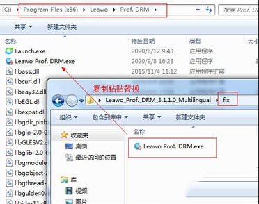 5、接着将Fix夹中的“Leawo Prof. DRM.exe”破解文件复制到安装目录中粘贴替换,默认安装目录为【C:\Program Files (x86)\Leawo\Prof. DRM】