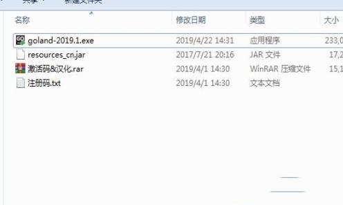 1、下载goland 2019激活码解压,得到goland 2019.1原程序、中文补丁包和注册码;