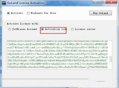 3、弹出注册界面,选择"activation code"输入注册码即可激活。