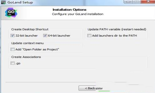 3、勾选创建goland 2019.1桌面快捷方式,32位和64位建议都勾选,关联文件可以自行选择;