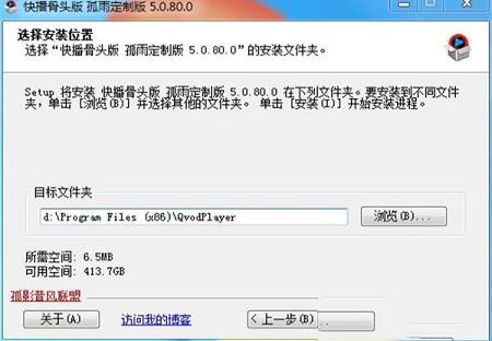 3、安装目录,默认C盘, 改为D盘了。(D:\Program Files (x86)\QvodPlayer)