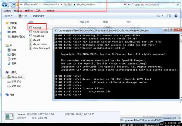 6、先不要运行软件,我们先运行授权工具AMPED\sfx_rlm_windows内的“rlm.exe”