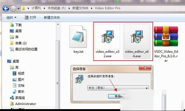 1、下载数据包并解压,双击“video_editor_x64.exe”选择中文并点击确定