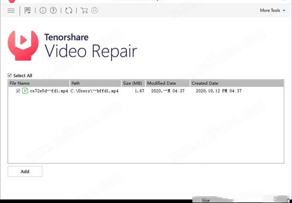 温馨提示:如果您想一次修复多个视频,请单击“添加”按钮以选择更多视频