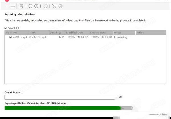 选择目标视频后,单击“修复”按钮以还原损坏,损坏的无法播放的视频