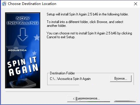 2、双击Acoustica-Spin-It-Again-Installer.exe安装程序,选择软件安装路径
