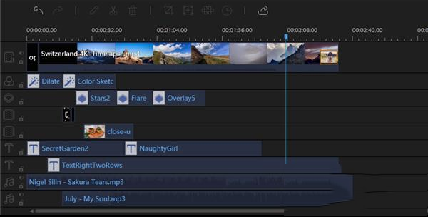 要是你想在这一帧视频里再添加一些图片或是画中画效果,软件的多轨道编辑就可以帮到你!在原视频轨道的基础上自动多开一条轨道,可以将素材拖进并进行编辑处理,使视频层次更丰富!而且可以同时编辑字幕和背景音乐的素材,即时观看视频整体效果。