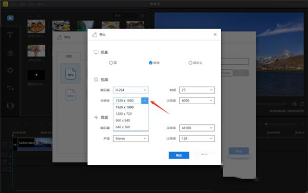 可以选择将文件保存为工程项目,便于下次编辑。若你想保存到电脑上为可播放的文件,则可选择“导出”,在界面上你可以自行调整视频的清晰度、格式、质量等,支持MP4、WMV、AVI、MKV、MOV流行视频格式,还可以单独输出为音频。软件可以根据你的视频尺寸比例将分辨率设置为1920*1080,1280*720,960*540,640*360等,无损画质,全屏观看更舒心。