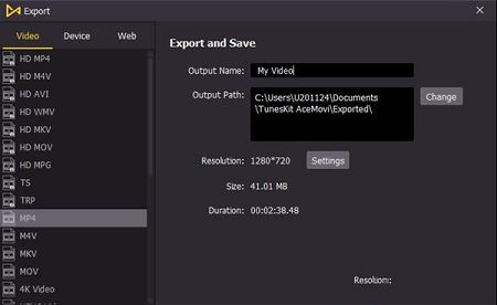 在“导出窗口”中,您可以将视频保存为各种流行格式,例如MP4,AVI,MOV,MKV,MPEG-1,MPEG-2,OGV,4K视频,3GP,3GP-2等。您可以还可以更改视频名称和路径,在输出之前自定义视频质量,编解码器,分辨率,帧速率,比特率等。
