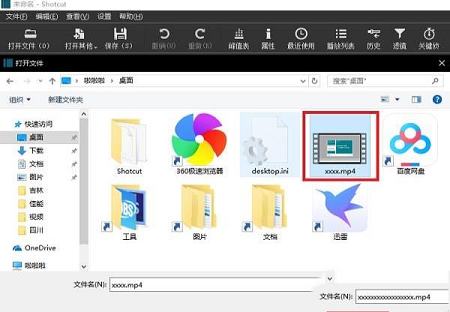 1、打开文件夹中的shotcut.exe,点击左上角【文件】->【打开文件】