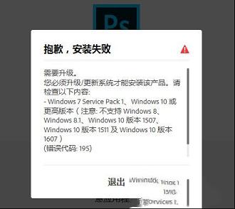 您必须升级/更新系统才能安装该产品。请检查以下内容Windows 7 Service Pack 1、Windows10或更高版本(注意:不支持Windows 8、Windows 8.1、Windows 10版本1507、Windows 10版本1511及Windows10版本1607)(错误代码:195)