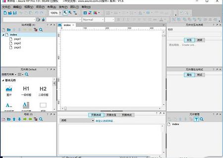 线框图工作区也叫页面工作区,线框图工作区是你进行原型设计的主要区域,在该区域中你可以设计线框图、流程图、自定义部件、模块。