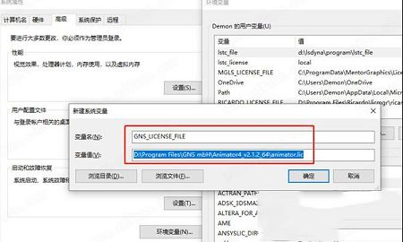 11、创建系统环境变量,GNS_LICENSE_FILE = animator.lic的完整路径