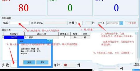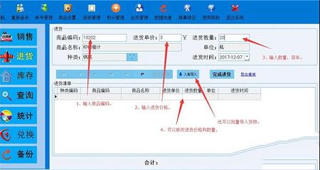 3、销售:零售商品、自动统计数量和金额、自动找零。
