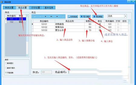 9、商品设置:设置初始数据,使用系统前必须输入的基础数据。