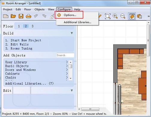 3、Room Arranger数据库包含一个相当广泛的库,其中包含各种内部元素:门和窗户,橱柜,椅子,桌子,浴室,卧室,厨房,其他配件,楼梯,花园配件等。