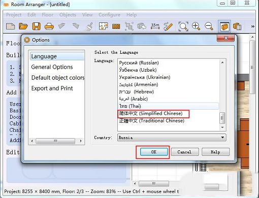 2、选择language里面的简体中文,Country选china即可完成汉化