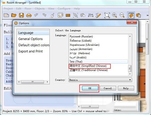 2、选择language里面的简体中文,Country选china即可完成汉化