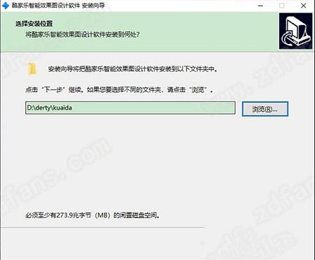 1、在本站下载解压文件后,双击kuaida-1.0.0.exe开始运行安装程序。浏览并选择软件安装目录,选好后单击下一步。