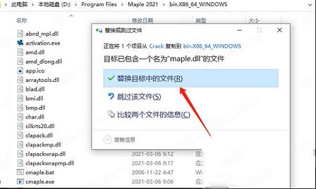 2、先不要运行软件,将Crack文件夹内的"maple.dll"复制到软件安装目录下替换