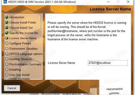 3、对于许可证服务器名称,请确认默认值:27027@localhost