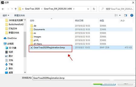 5、在呼出的打开窗口中选择【GearTrax2020Registration.bmp】,然后点击【打开】。