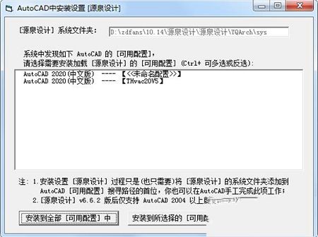 1、自动安装方法:将“源泉设计”软件包解压到你指定的任意文件夹(如:“D:\yqarch\sys”,注:路径中不能含有括号),点击一键安装程序setup.exe(浩辰CAD用浩辰gsetup.exe),按提示选取需关联的AutoCAD/浩辰CAD用户配置文件(Profile)就可以简单完成安装设置过程。