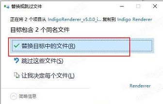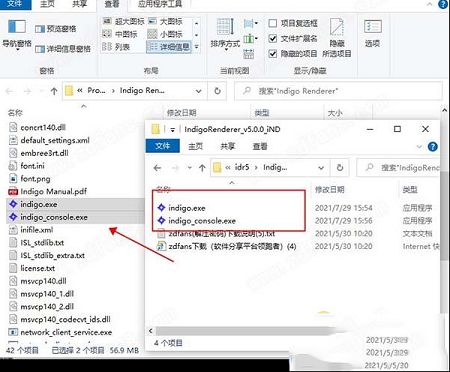 8.回到刚才下载的数据包中将“IndigoRenderer_v5.0.0_iND”文件夹中的破解文件复制到上一步打开的软件安装目录中