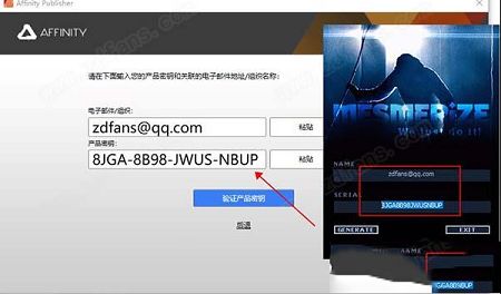 4.最后将注册信息复制到激活窗口,点击验证