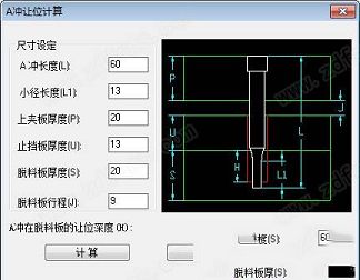 6、支持A冲让位计算:尺寸设定、A冲长度、小径长度、上夹板厚度、止挡板厚度、脱料板厚度