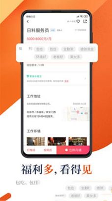 【求职更安心】与店长随时随地开聊,不用担心假职位、黑中介 【跳槽更简单】随时随地查看附近新职位,不用挤地铁就能换工作