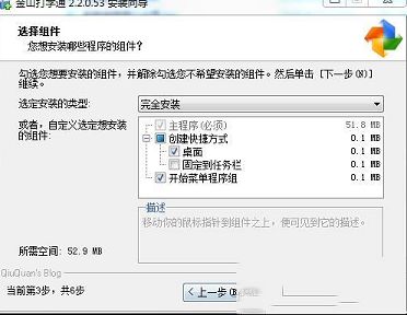 3、选择需要安装的组件,选择创建快捷方式。