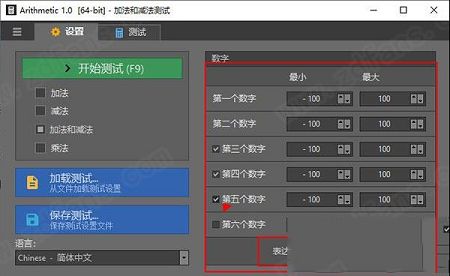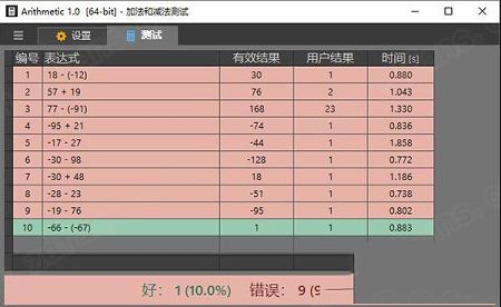 1、测试的大配置可能性:能够设置算术运算类型,数量(最多6个),每个数的最小值和最大值,算术运算的数量。2、测试完成后显示详细结果,突出显示正确(绿色)和错误(红色)结果。