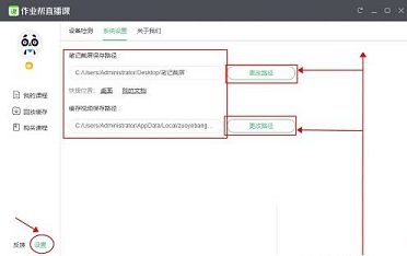 5、相对于学习软件,可能大家更在乎的是电脑的文件保存路径在哪里,点击左下角的“设置”,在【系统设置】这一栏中分别对应着:笔记截屏保存路径、缓存视频保存路径,为寻找方便你可以自定义保存路径。