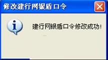 2、屏幕弹出建行网银盾口令修改成功提示,如下图,点击“确定”