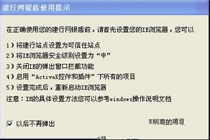 4、屏幕弹出“建行网银盾使用提示”,如下图,点击“确定”