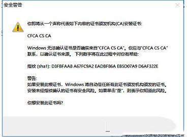 10)安装证书,系统会弹出提示对话框,请选择“是”
