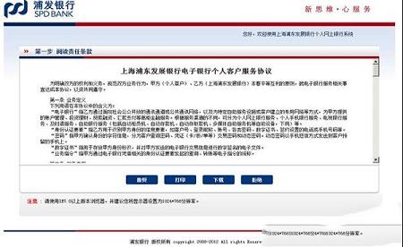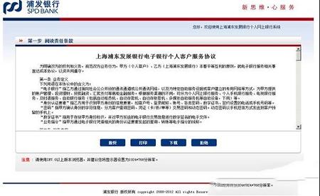 1)进入首次登录校验流程,阅读并接受《上海浦东发展银行个人网上银行客户服务协议》