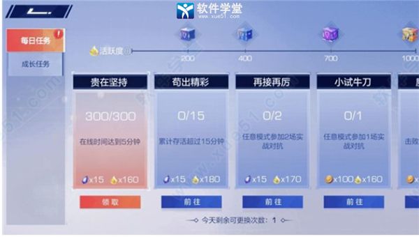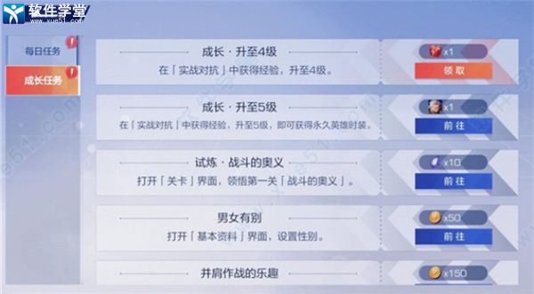 成长任务,每个人都有其中包含了对局上传头像,上传照片,升级等等等等,它可以获得大量的星币、黑玉包括英雄在内的其他的资源,是玩家获取大量资源的重要手段。