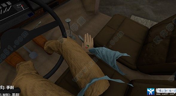 3、上车后对准手刹,按下“e”键拉起手刹。