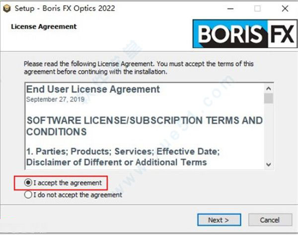 3、如图点击“agree”同意软件安装协议,点击next继续下一步。