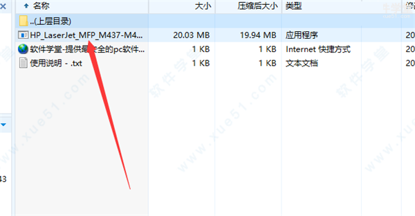 1、前往软件学堂下载惠普M437dn打印机驱动压缩包,并解压文件。