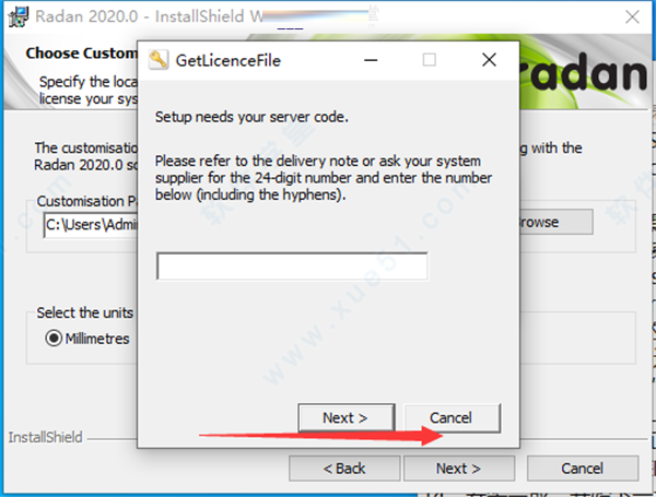 8、这里首先点击“Browse”,然后手动进入安装包内的Crack文件夹,并选择“zonghua.zip”压缩包,然后勾选“Millimetres”,并点击Next。