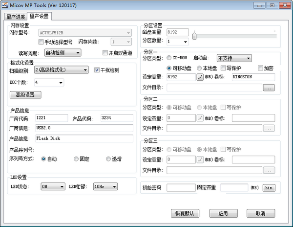 先打开该软件主程序,点量产设置,闪存型号选择,如果已经显示u盘型号,就不用手动选择了,周期自动,扫描级别为超高速,干扰检测,ECC4,城市道路。固定容量空(因为不扩容)。基本都是默认选项。