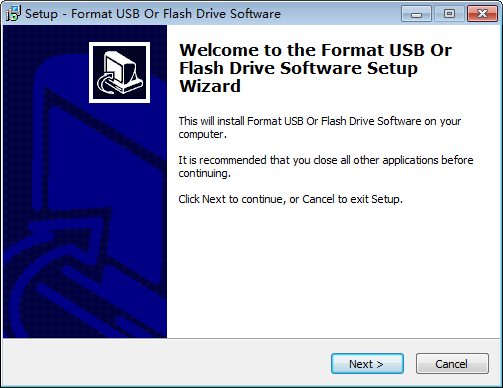 不需要用户的任何特殊输入一个简短的安装过程之后,你是一个标准的框架欢迎与普通布局,代表格式化USB或闪存驱动器软件的界面。