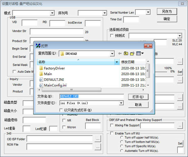 汉化版的慧荣SMI SM340AB主控量产程序,虽然汉化得不是很完整,但比起完全的英文版本要好用得多。